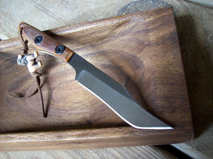 7"overall and made from an old German file. great steel similar to 1095. recurve hollow grind and raw honey micarta scales with offset monkey edge bolts. comes complete with a leather pocket sheath for EDC. $145 shipped US. **SOLD** liontribe
